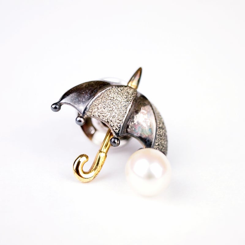A951 MIKIMOTO K18・S Pearl Drop Umbrella Pin Brooch