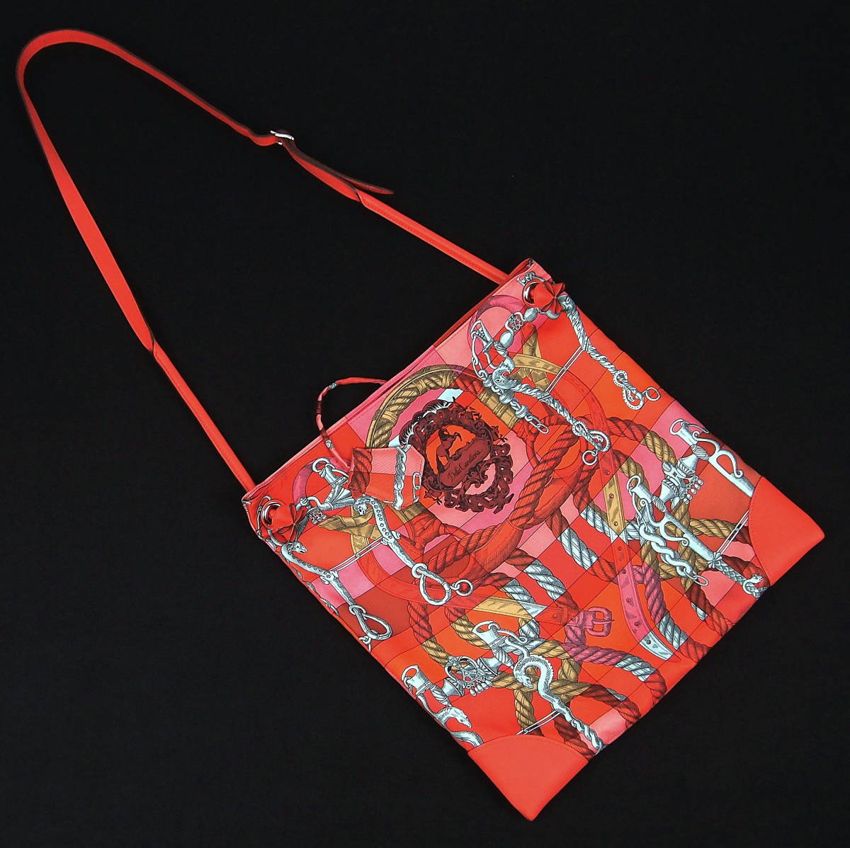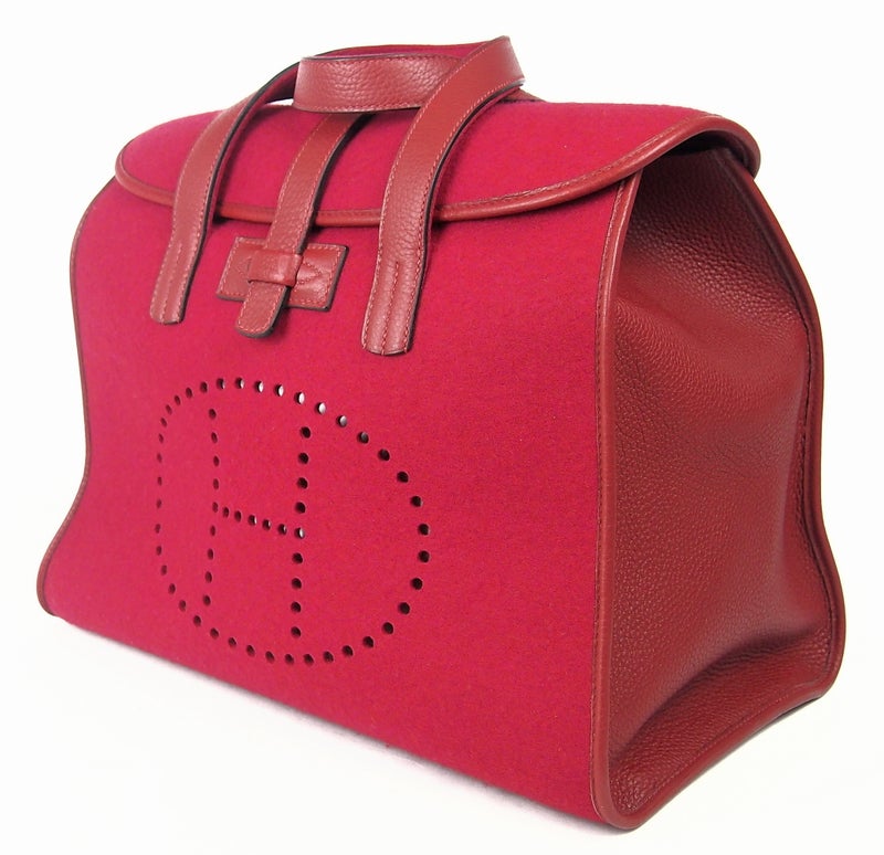 B345 HERMES Feu2dou Felt Hand Bag in Red