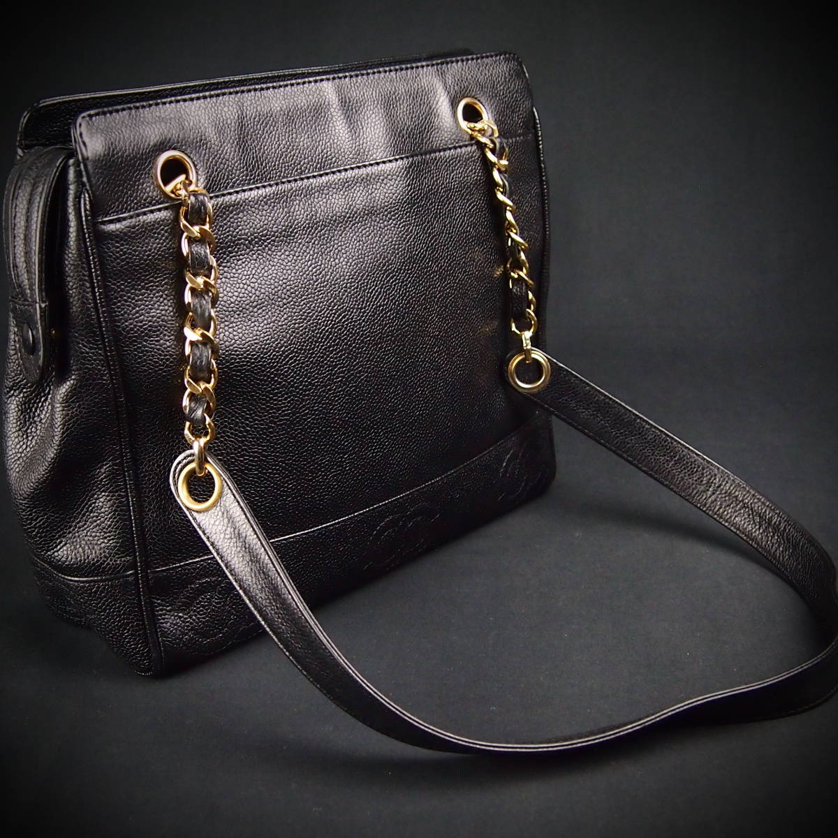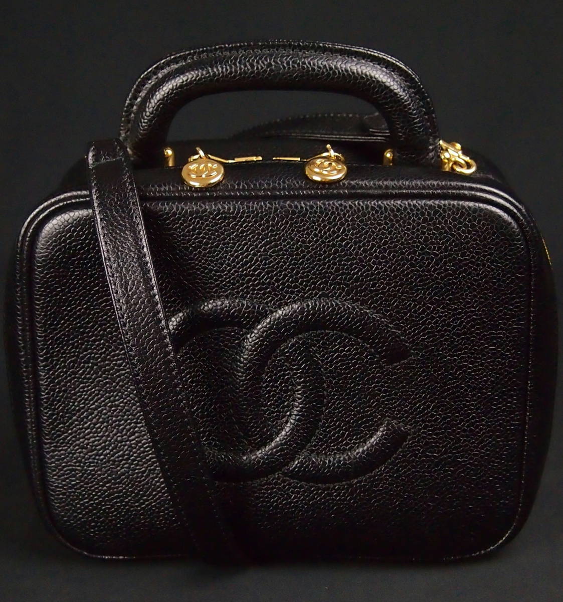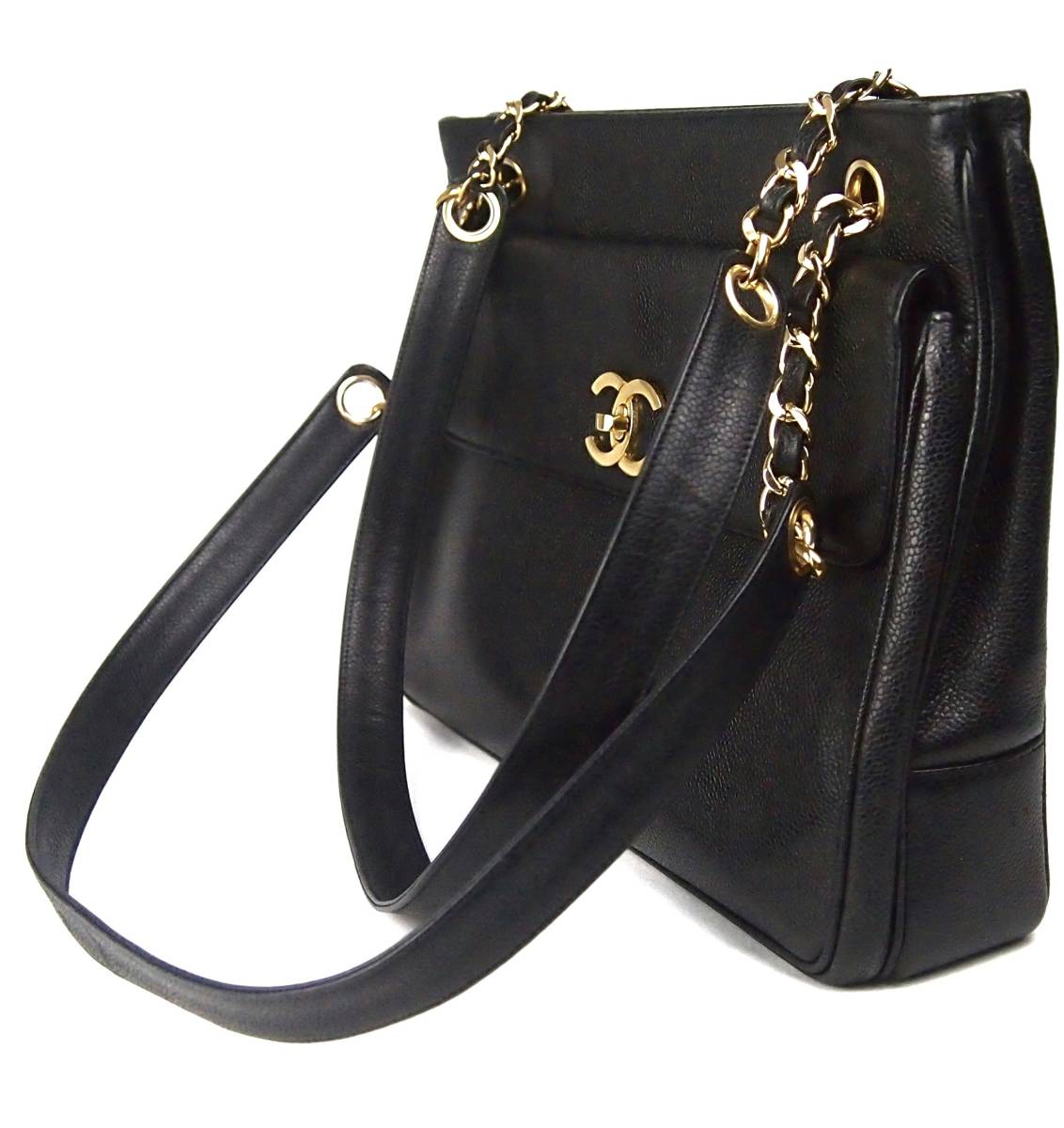 B197 CHANEL Vintage Caviar Triple Coco Shoulder Bag