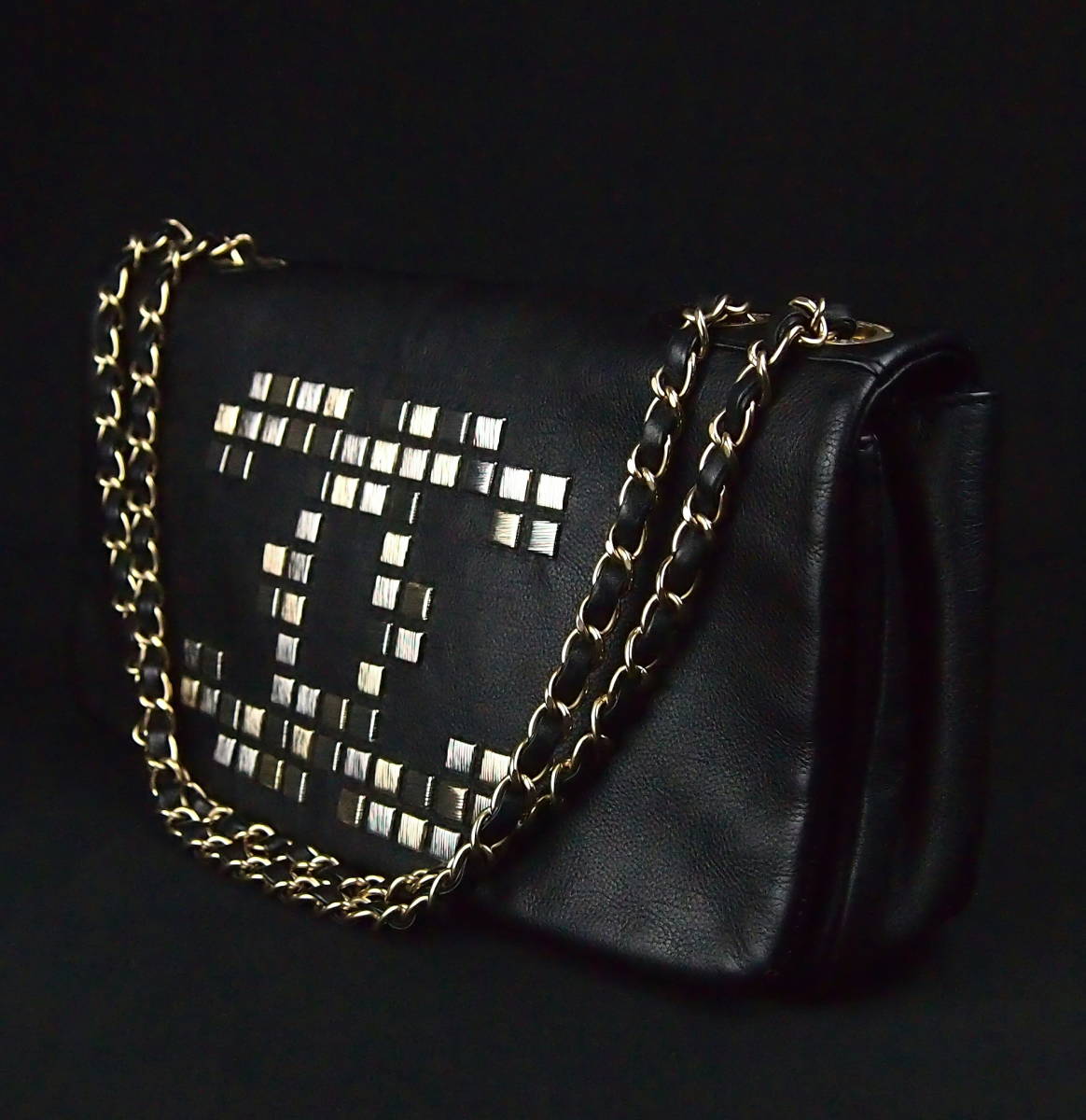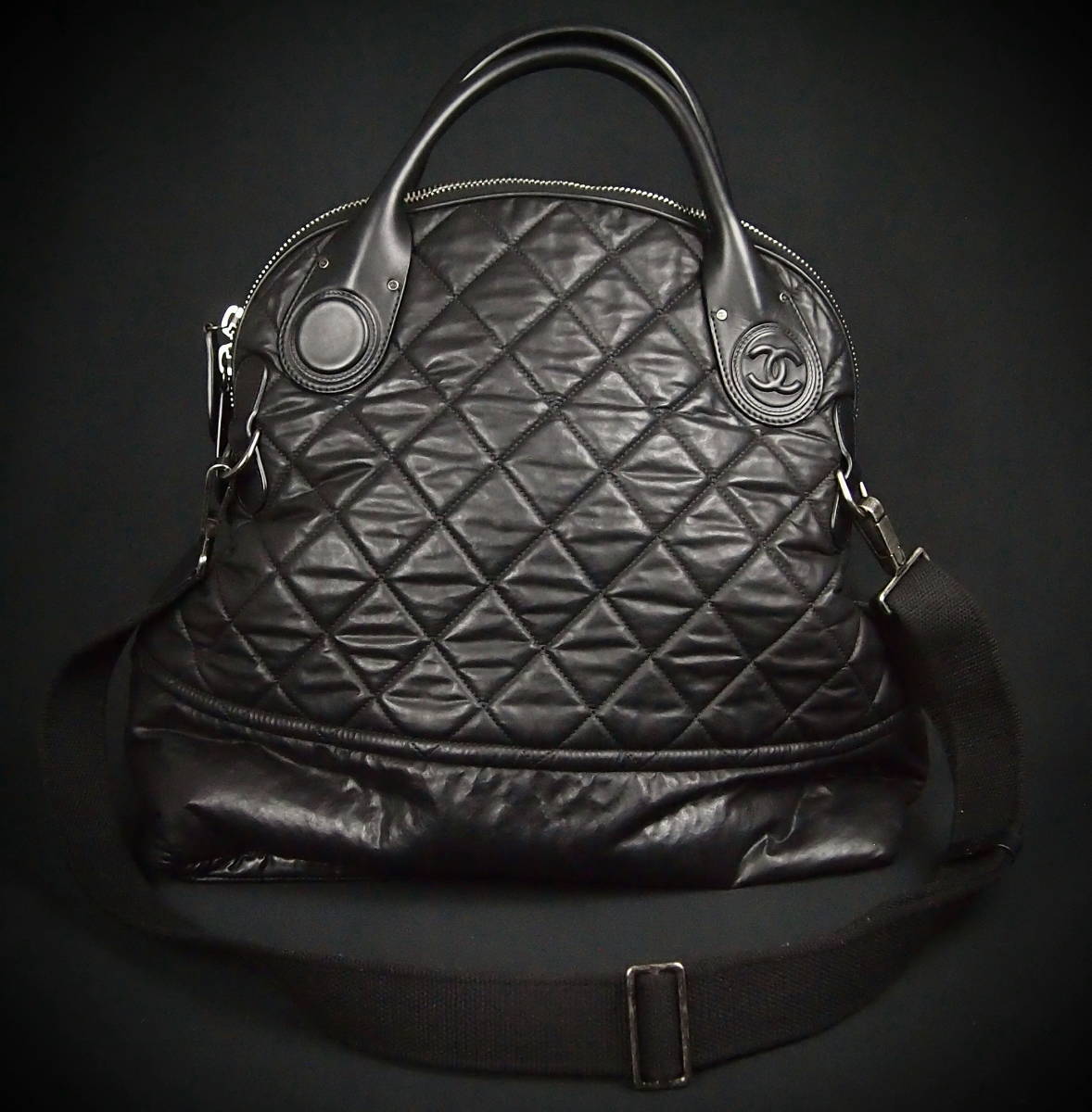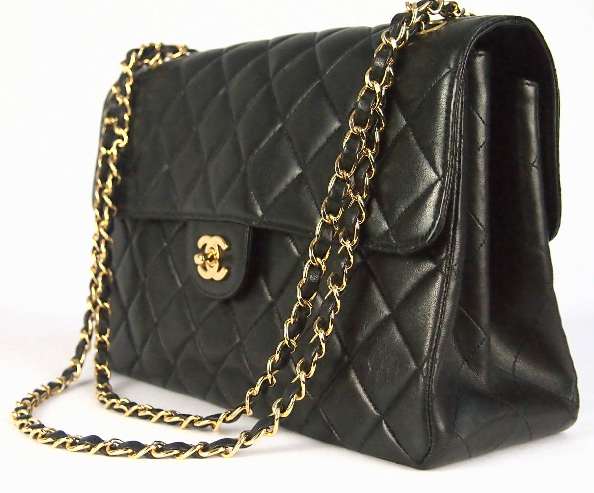 B197 CHANEL Vintage Caviar Triple Coco Shoulder Bag