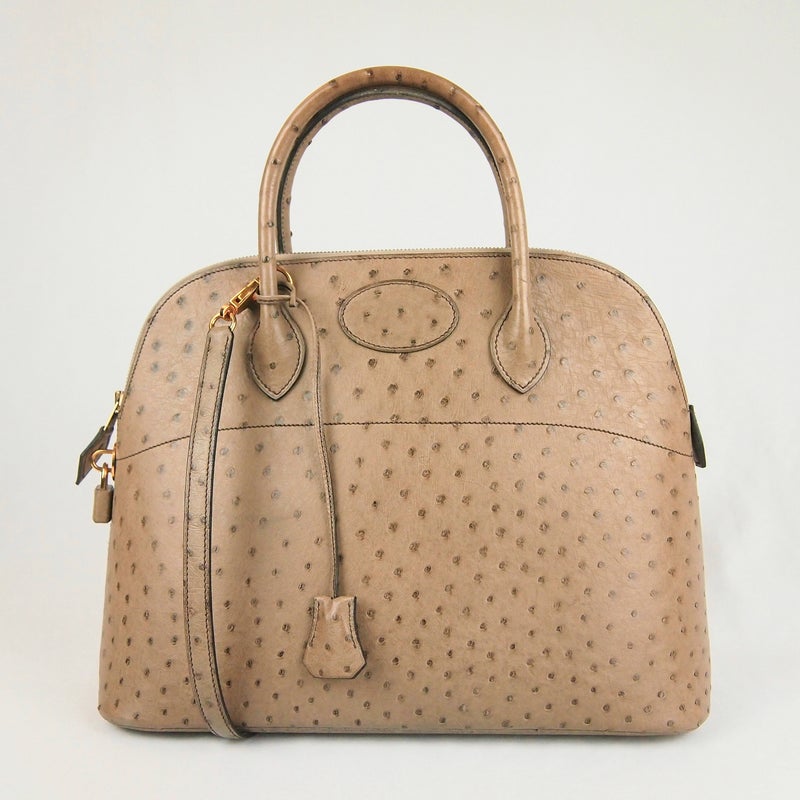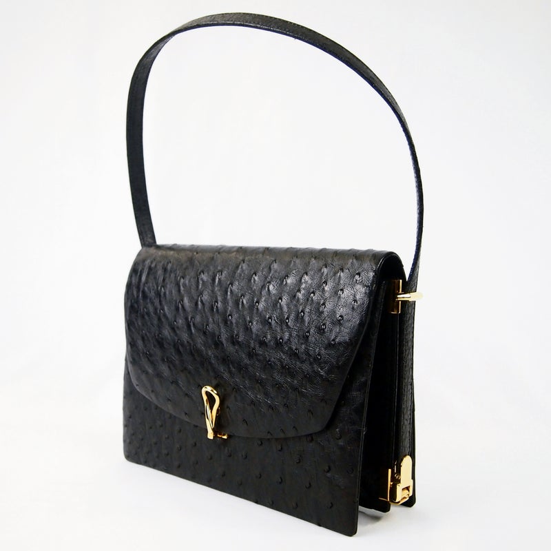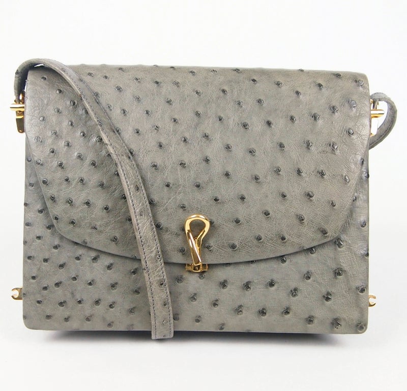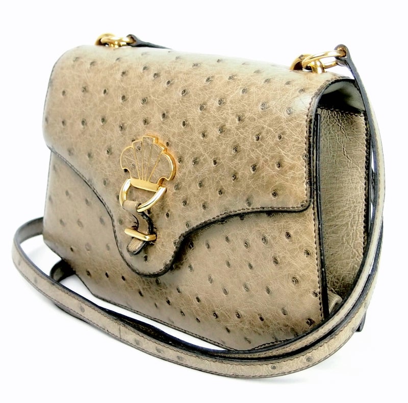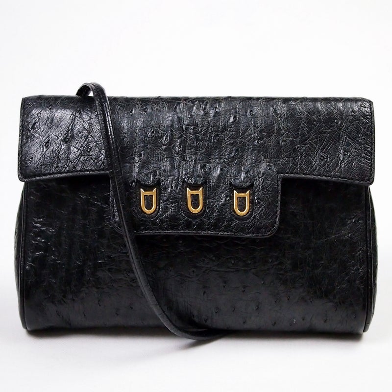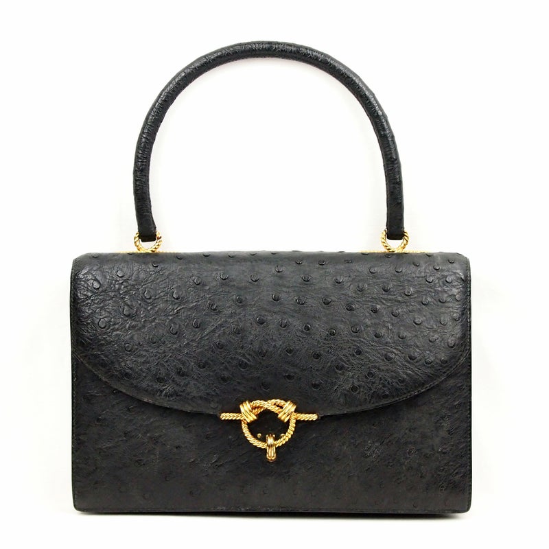 B450 HERMES 1974 Cordeliere Ostrich Hand Bag