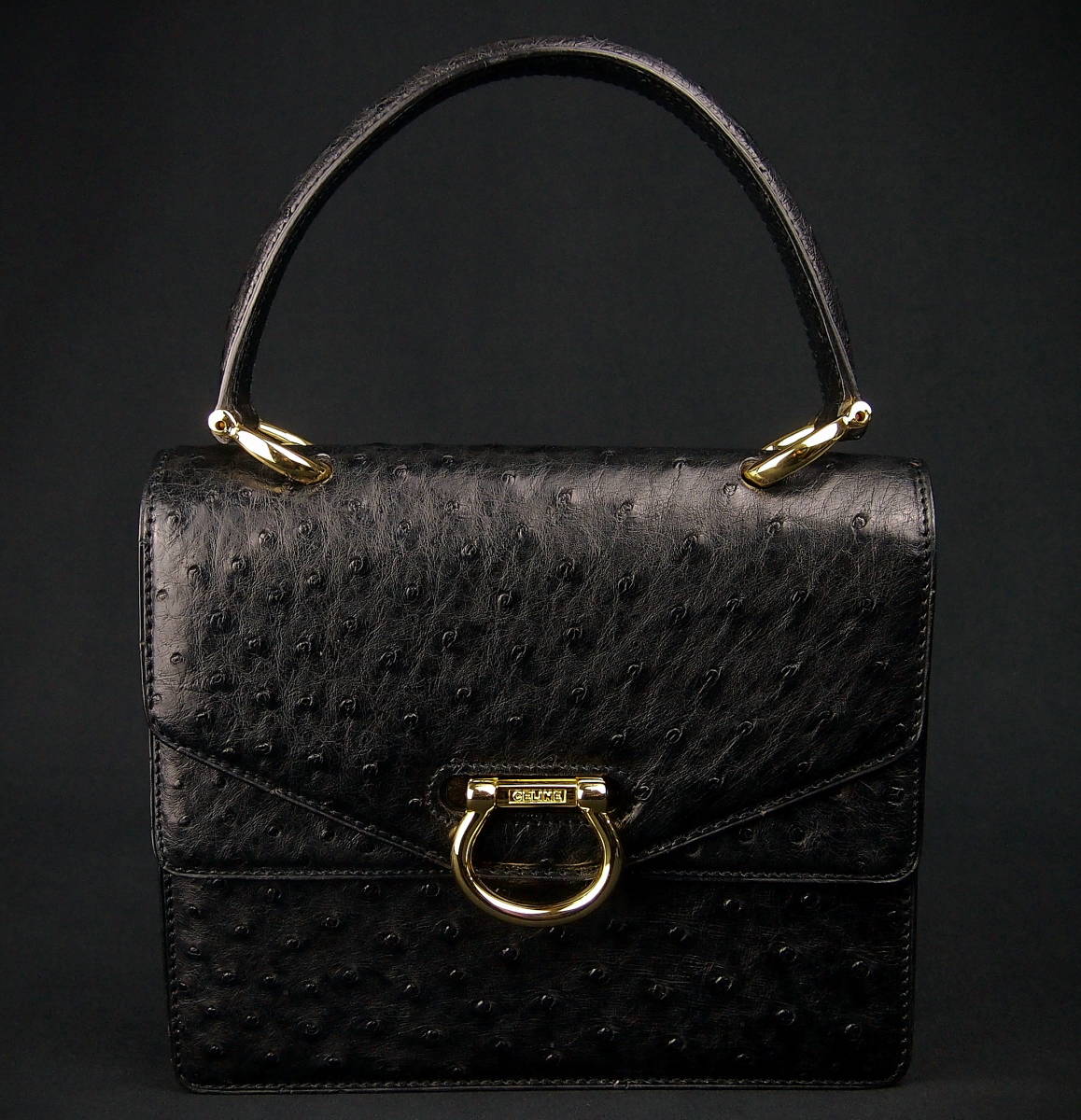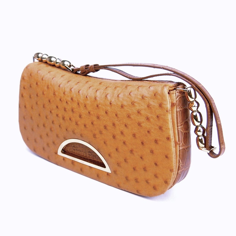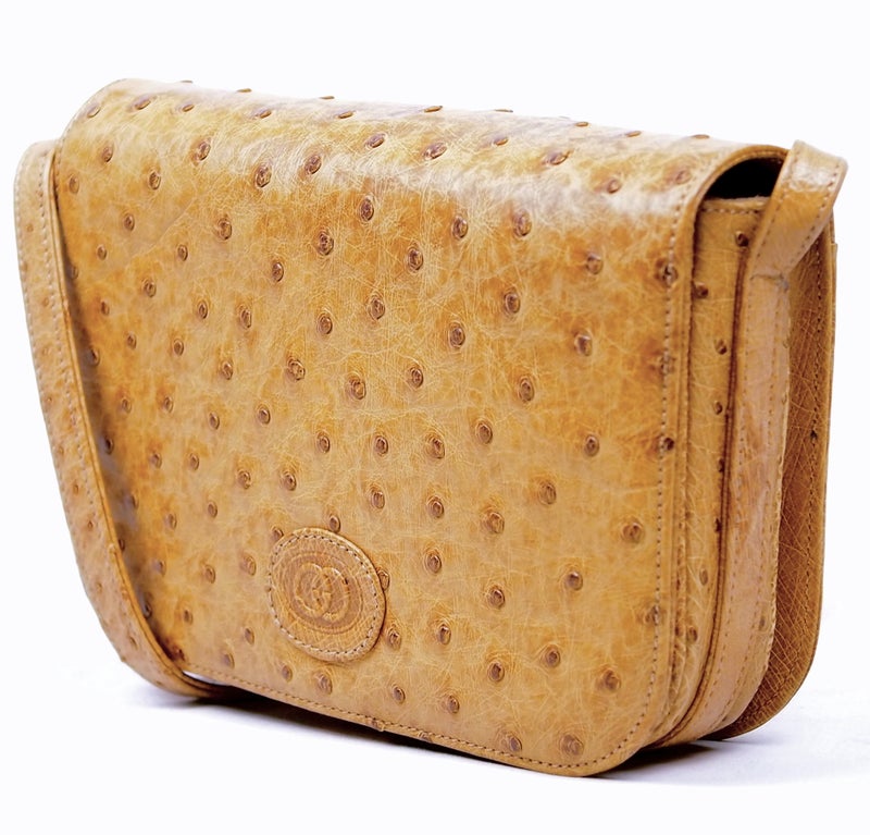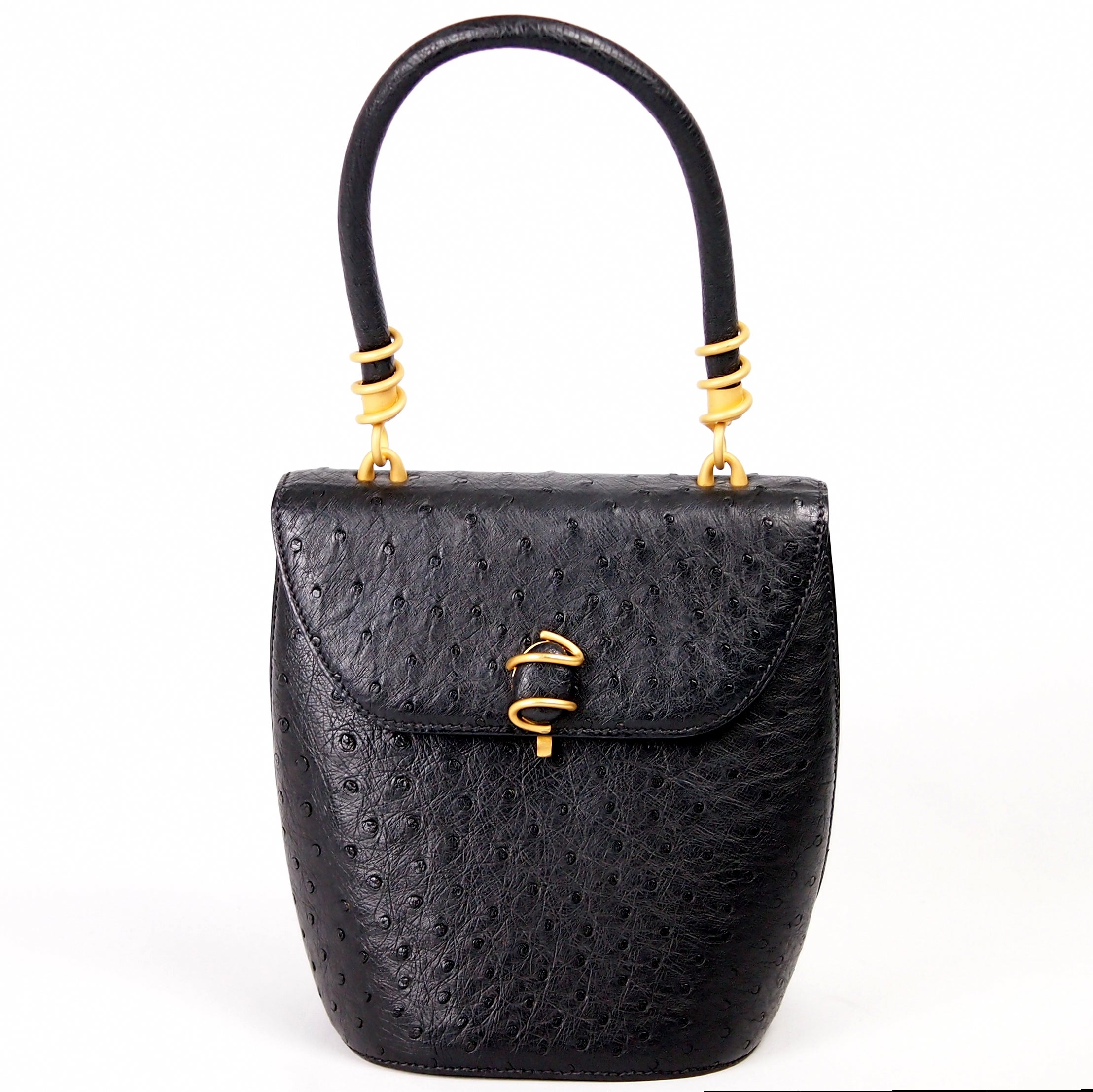 B450 HERMES 1974 Cordeliere Ostrich Hand Bag