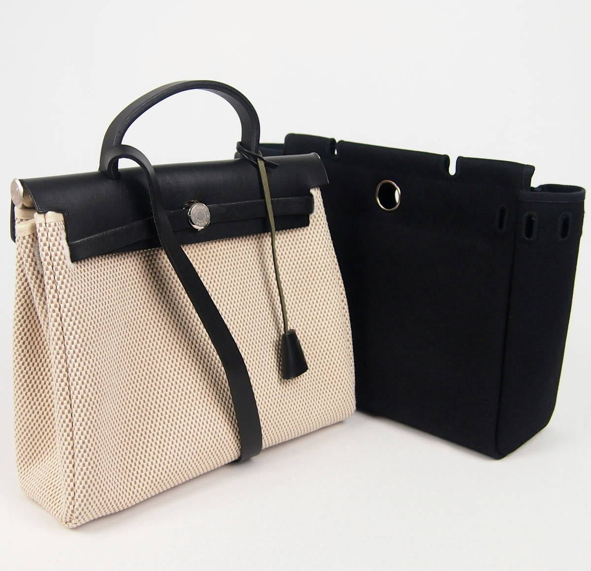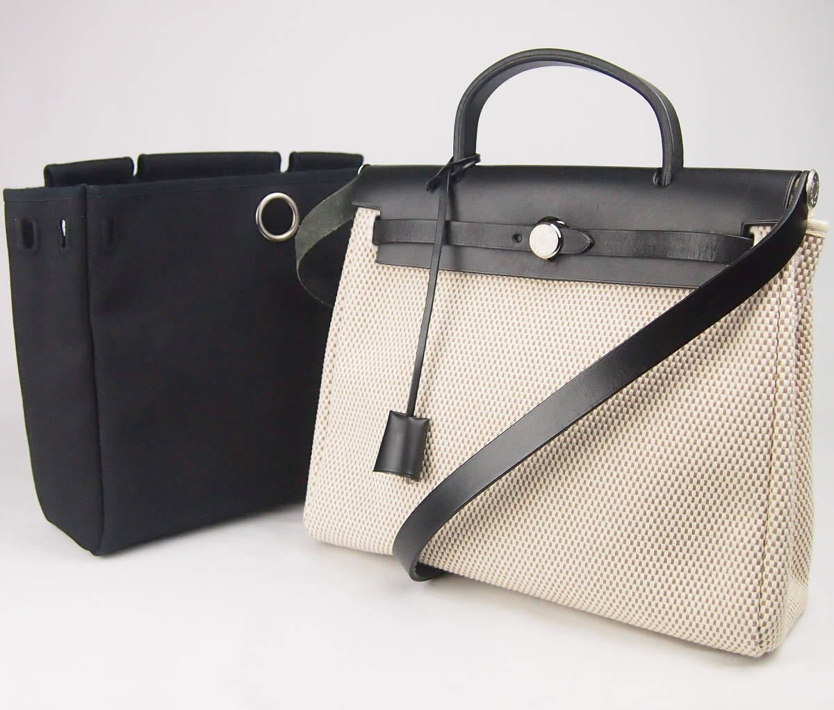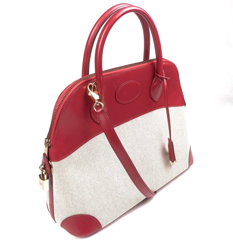 B439 HERMES 1994 Vintage Bolide 31 Canvas Combi Box Calf Bag