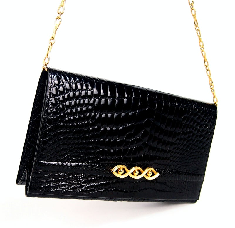 B251 VERSACE Vintage Snake Skin Vanity Bag