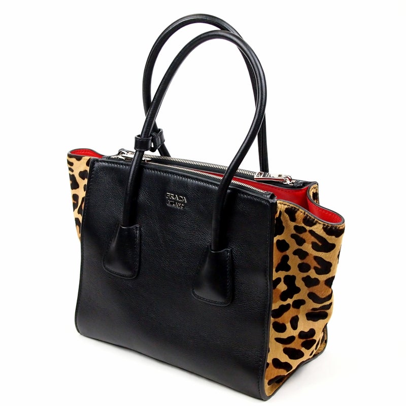 B448 PRADA Leather Reopard Bicolor Tote 2way Bag